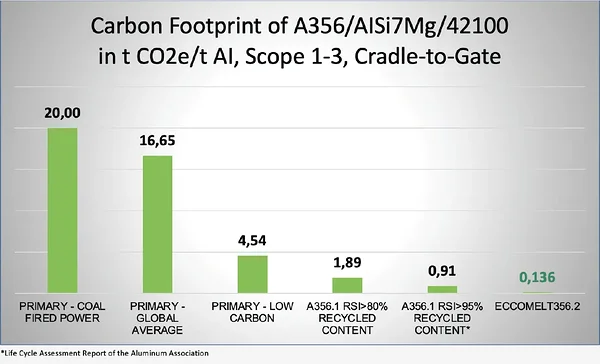 一番右の値が100%スクラップを使用した際の排出量で、0.136 tCO2e/tAlとスクラップ95%+新塊5%の約9分の1の量となっております。